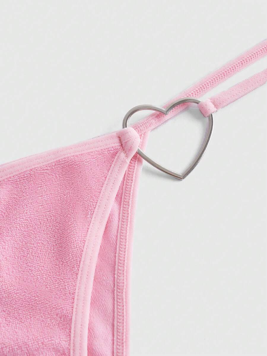 Kawaii Solid Heart-ring Lace Up Lingerie Set