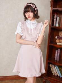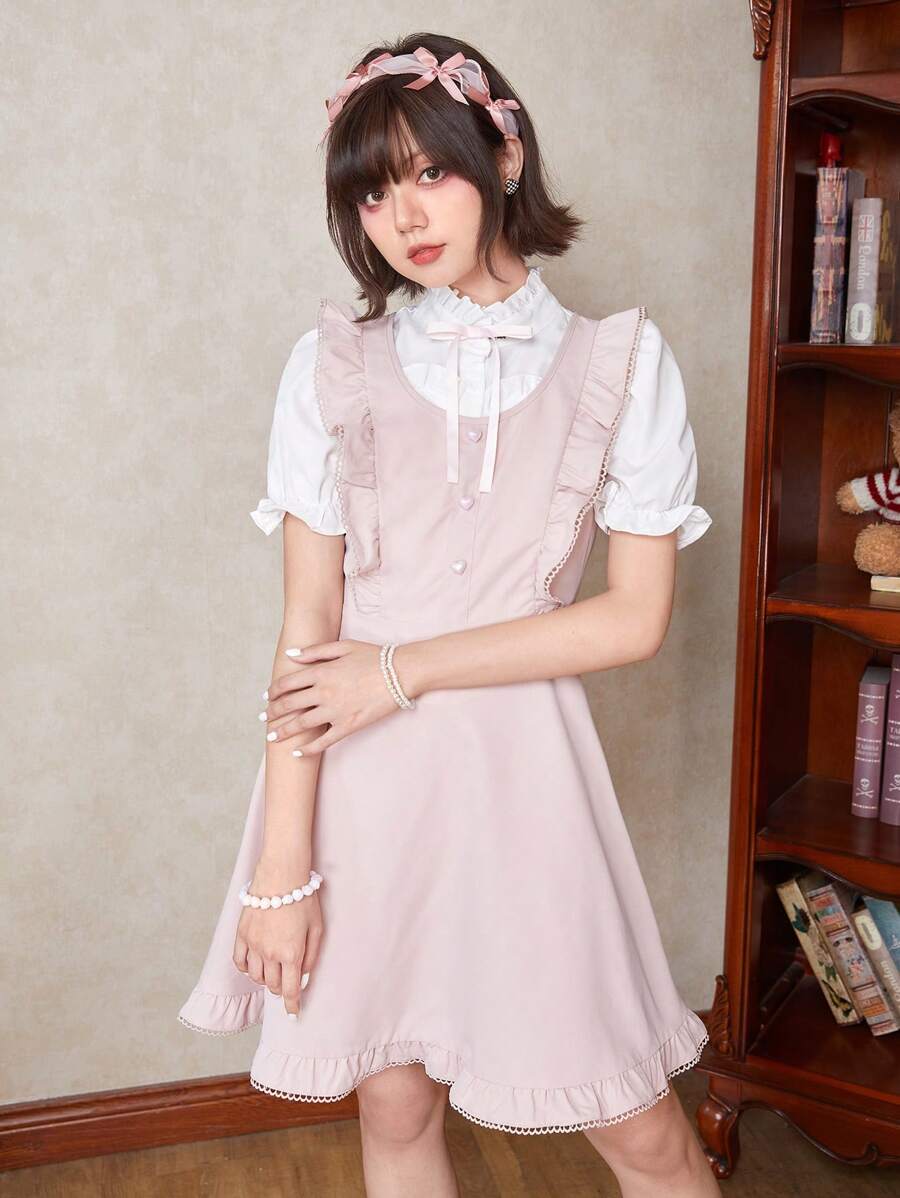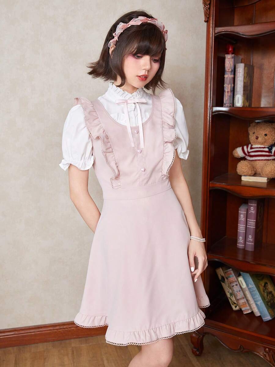Kawaii Solid Ruffle Trim Dress Without Blouse