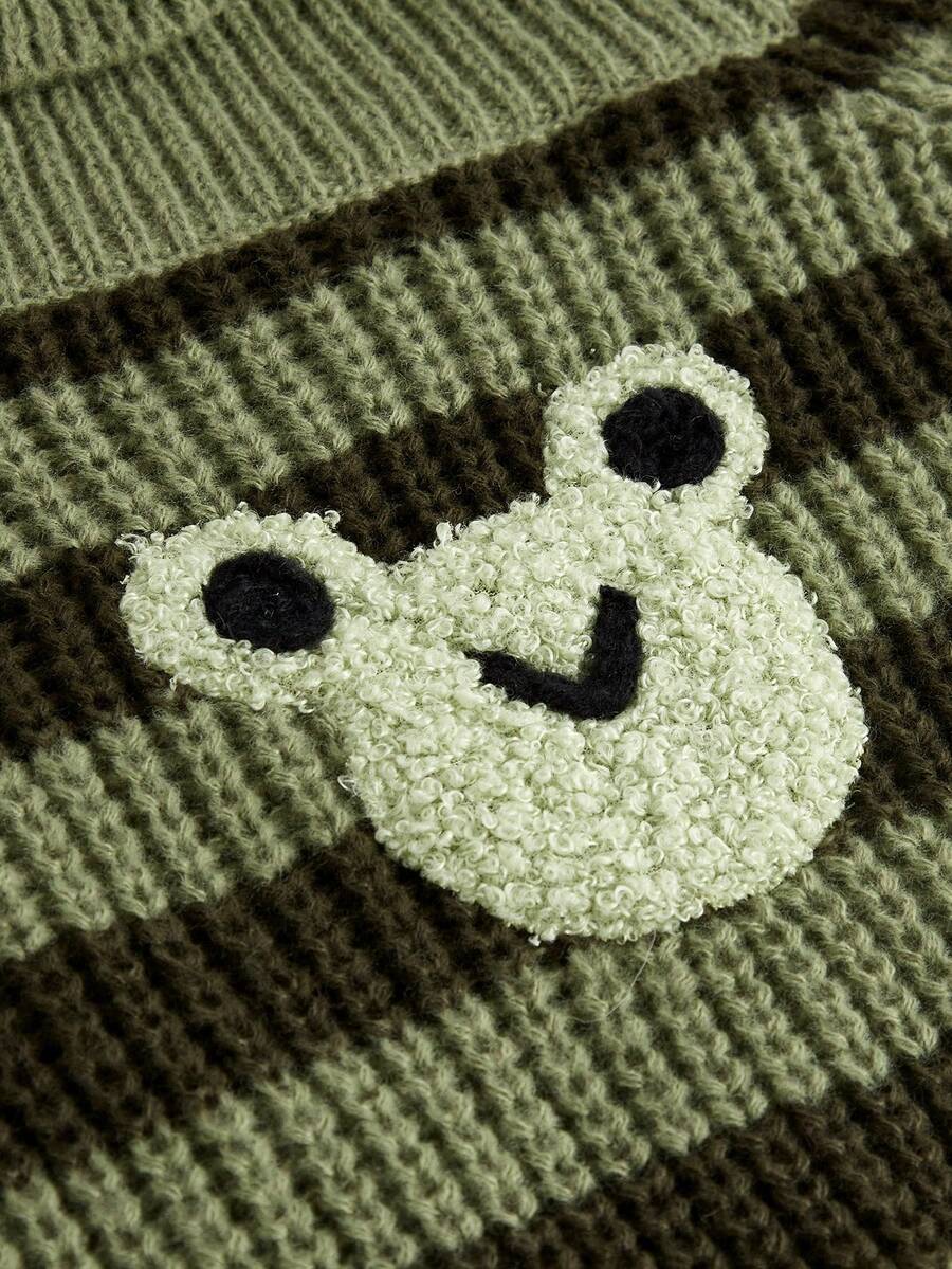 Kawaii Striped Knit High Neck Sweater With Frog Embroidery