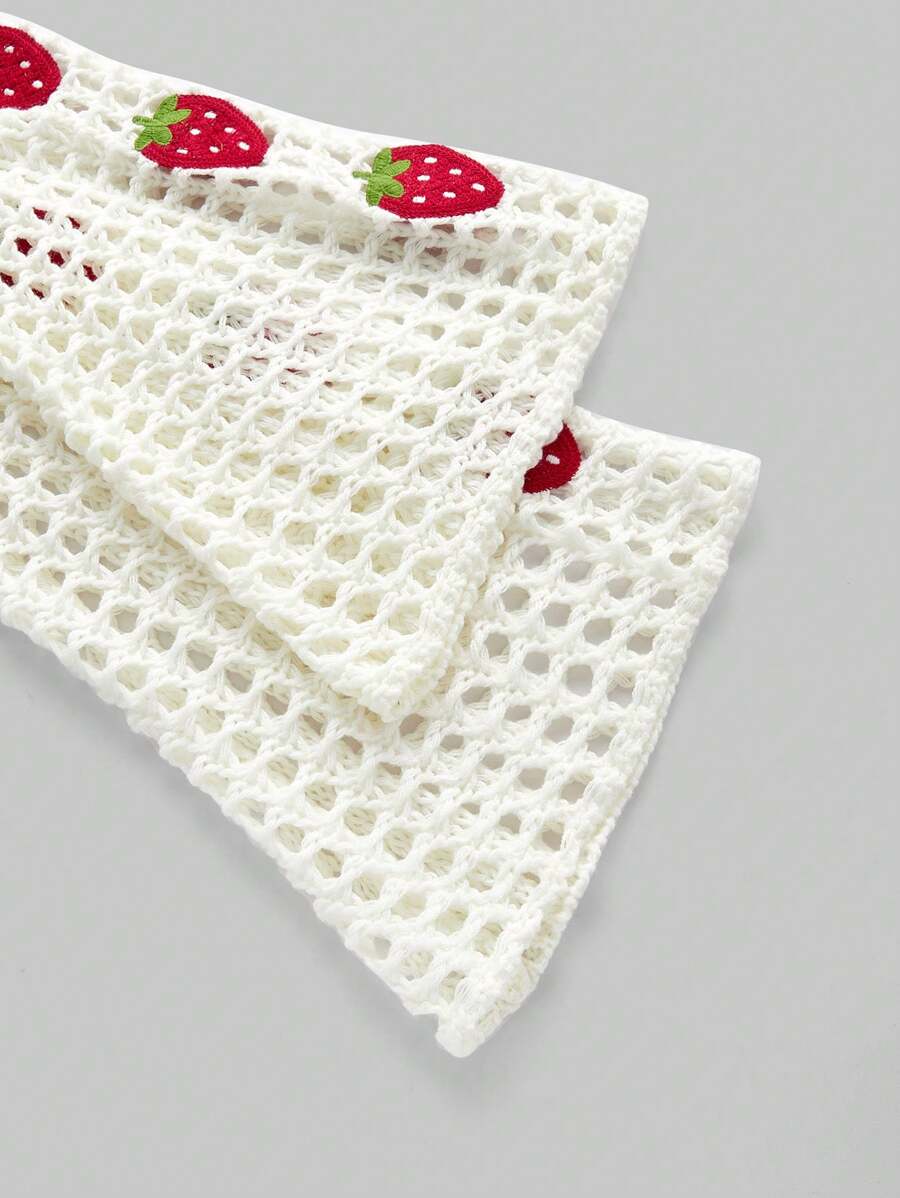 Kawaii Summer Crochet Ladies' Hollow Out Knitted Pullover Sweater With Strawberry Design, School