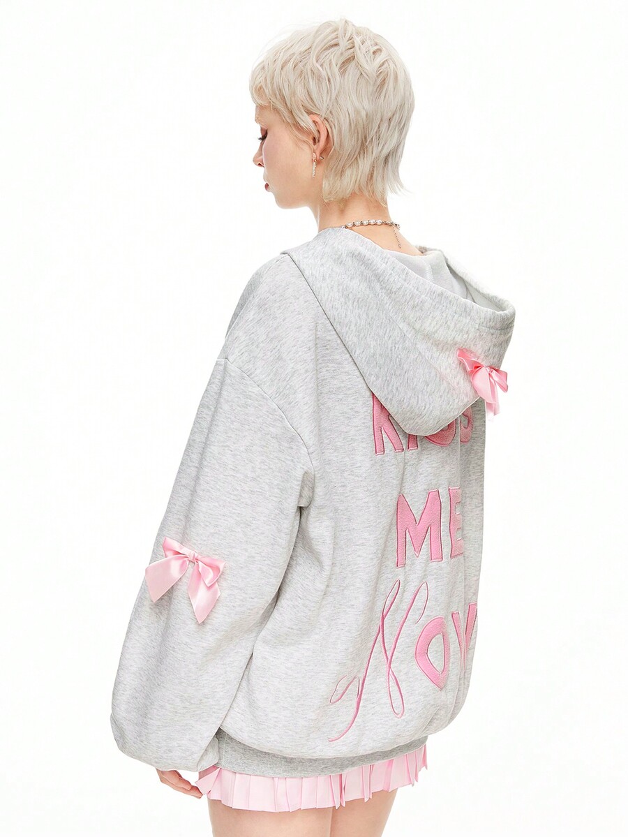 Kawaii Sweet Bow & Letter Embroidered Casual Women Sweatshirt, School