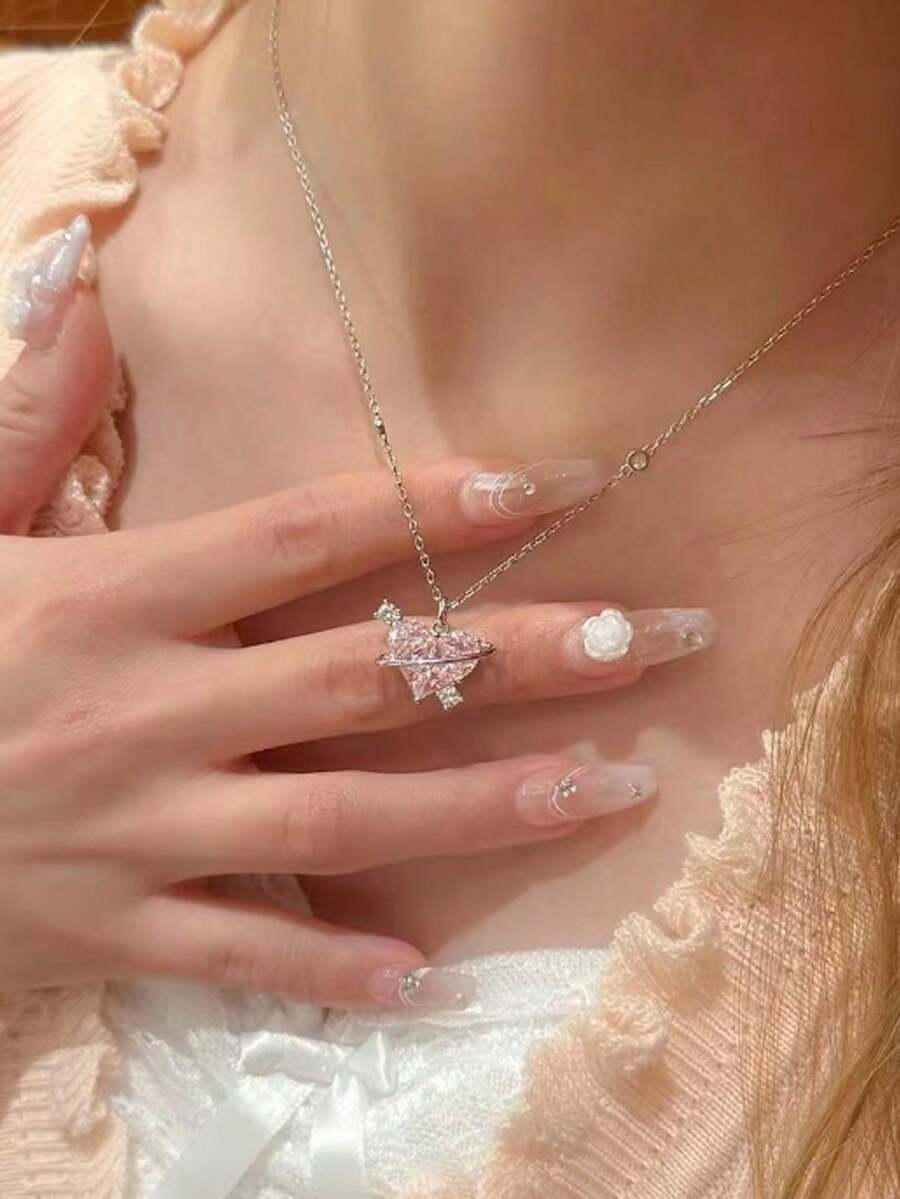 Kawaii Sweet Pink Heart Shaped Rhinestone Pendant Necklace