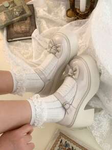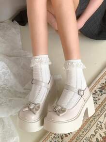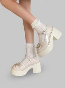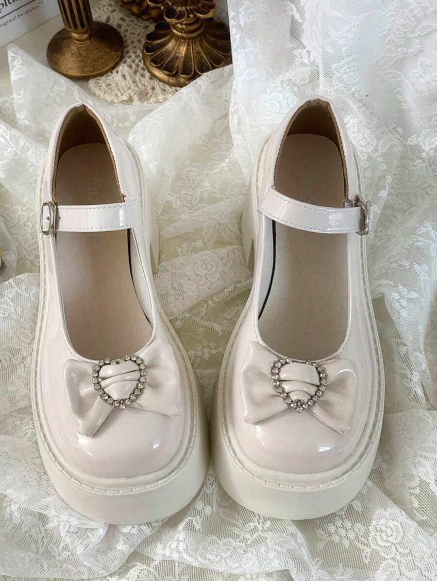 Kawaii Thick-Soled Mary Jane Women's Shoes With Patent Leather, Bowknot, French Vintage Style Chunky High Heels For Spring And Autumn
