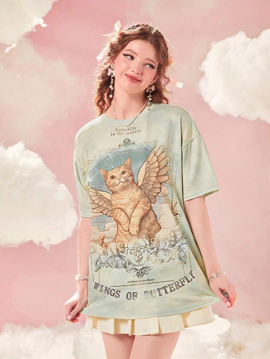 Kawaii Tie Dye Cartoon Graphic Drop Shoulder Tee