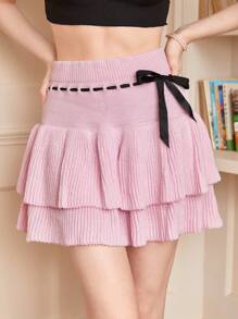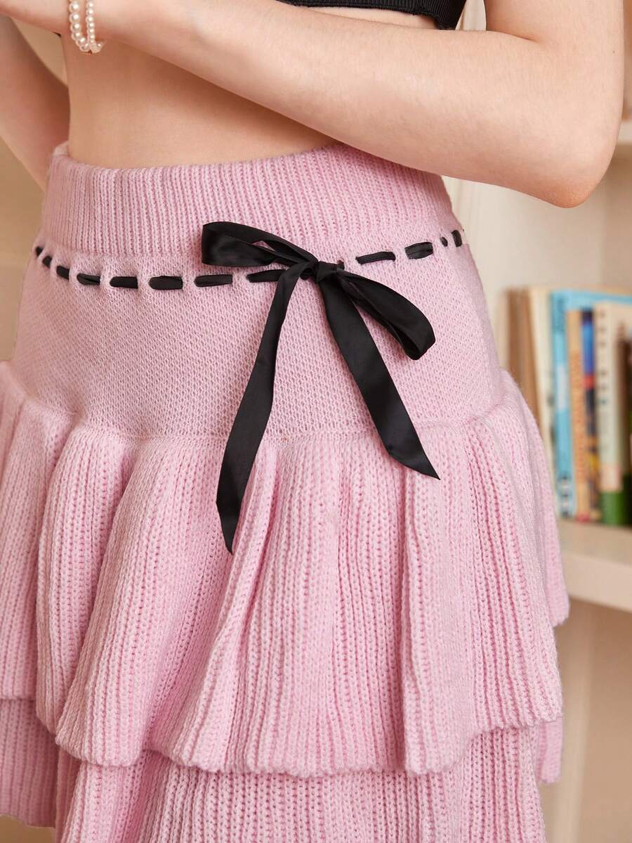 Kawaii Tie Waist Two Layer Hem Knit Skirt