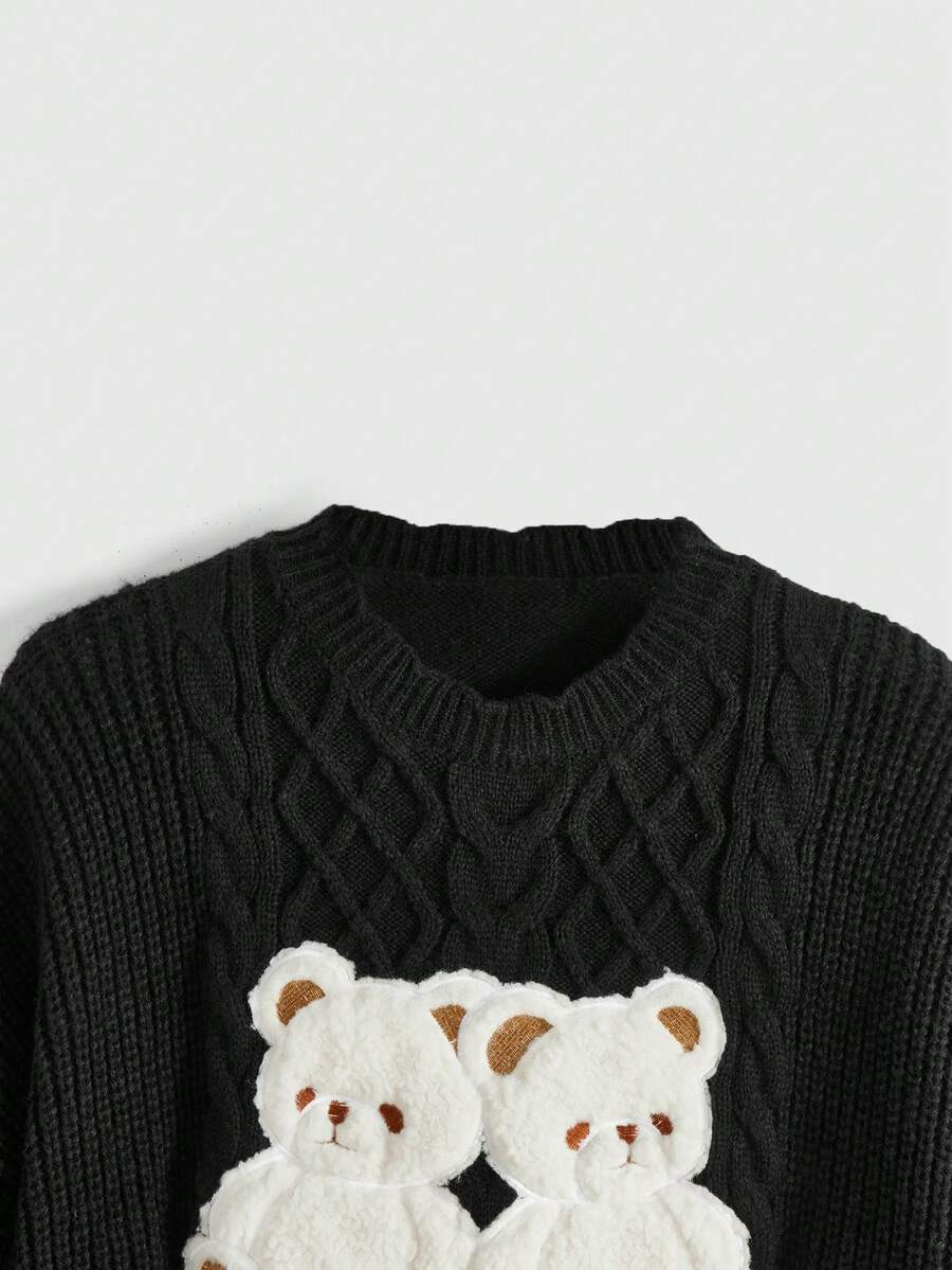 Kawaii Women'S Cartoon Bear Pattern Drop Shoulder Sweater