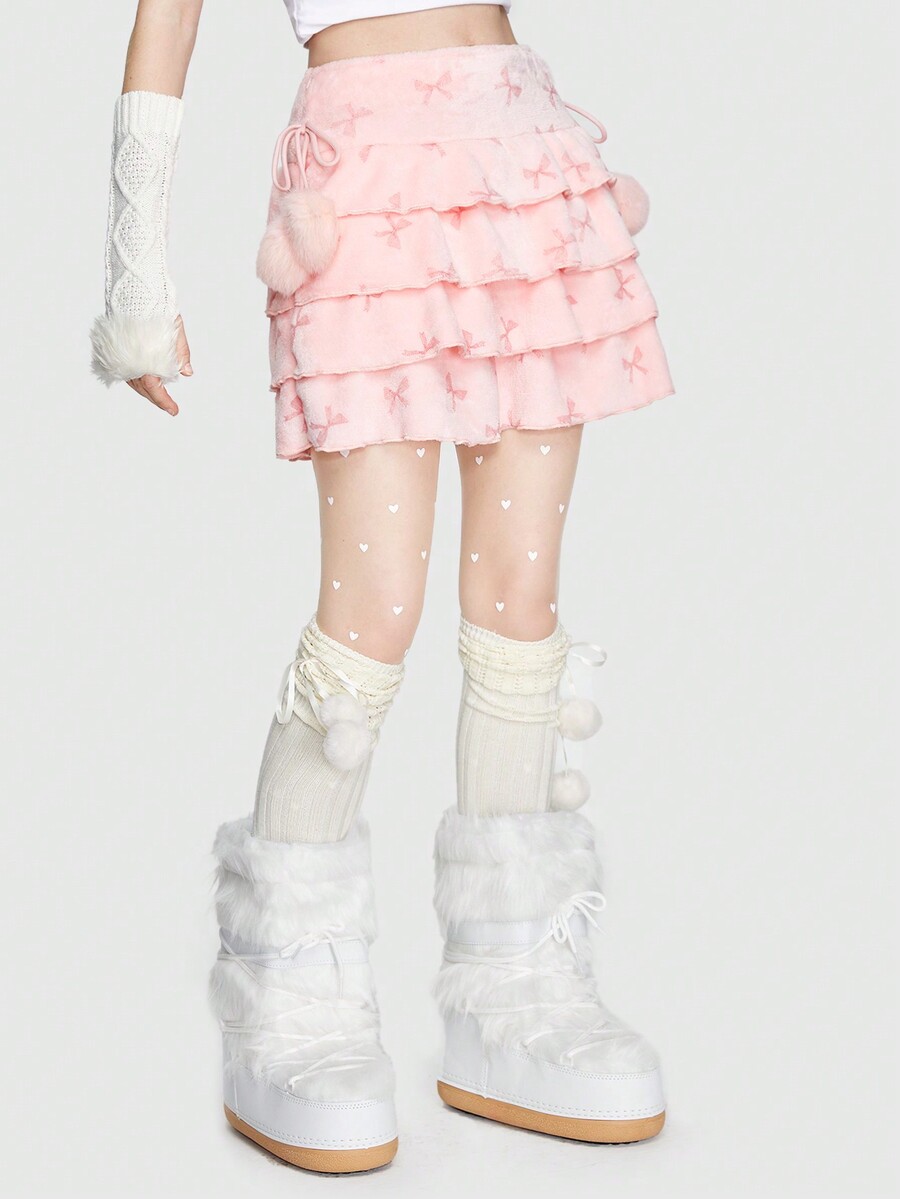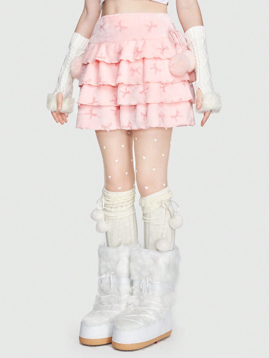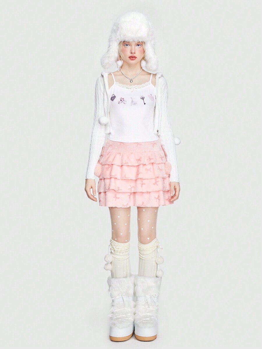 Kawaii Women's Butterfly Printed Multi-Layered Lace Skirt