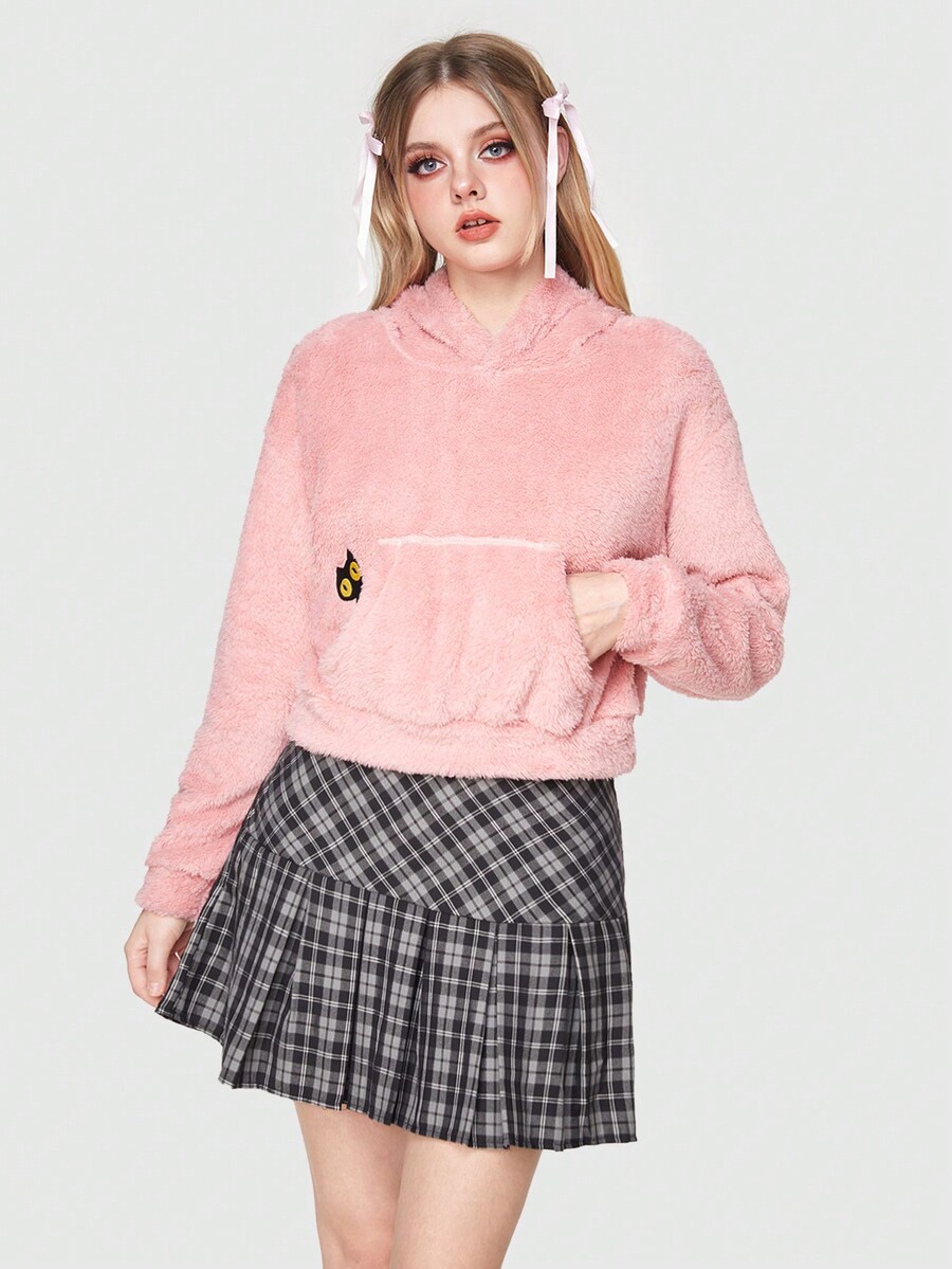 Kawaii Women's Cartoon Cat Embroidery Drop Shoulder Hoodie