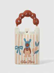 Kawaii Women's Casual Letter & Cartoon Pattern Handbag For Daily Use