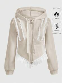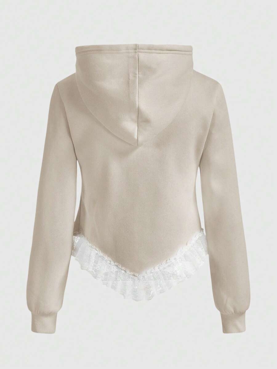 Kawaii Women's Fashion Casual Y2K Lace Trim Hoodie Sweatshirt