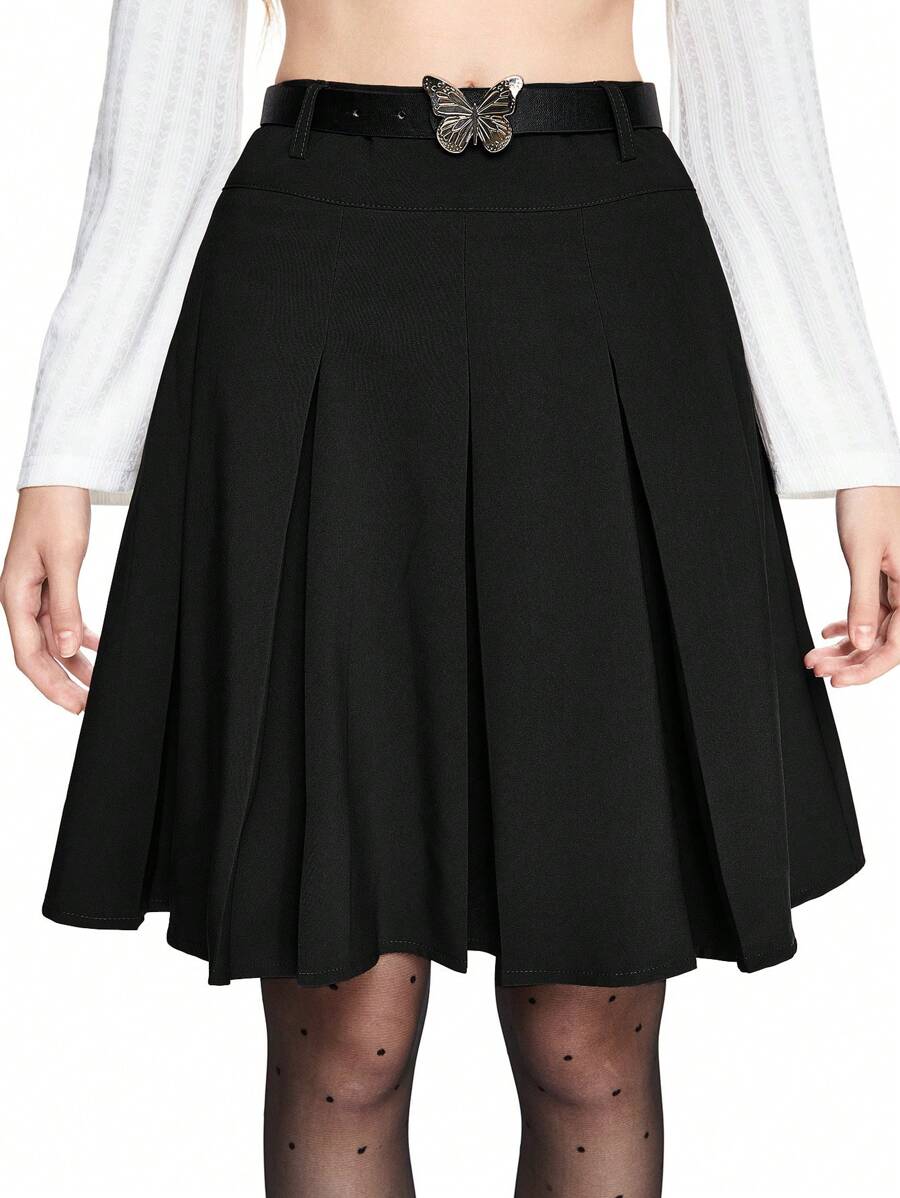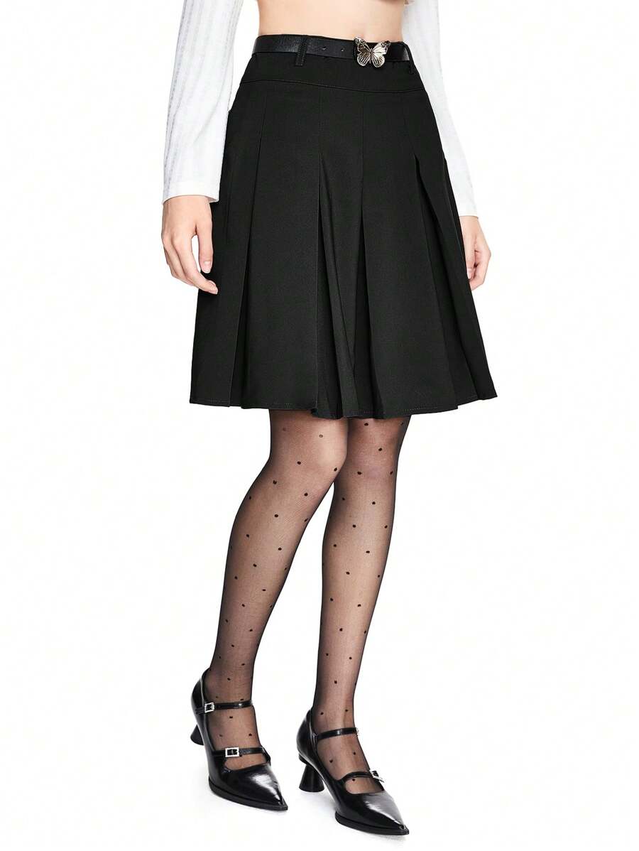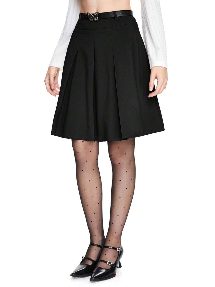 Kawaii Women's Gray Pleated Mid-Length Skirt, Academy Style, Back To School Season