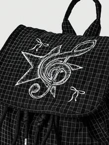 Kawaii Women's Musical Note Plaid Pattern Large Capacity Fashion Backpack