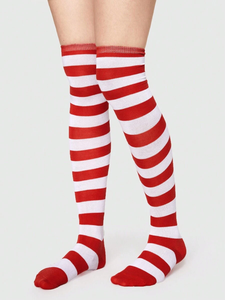Kawaii Women's Red & White Striped Over-the-knee Socks
