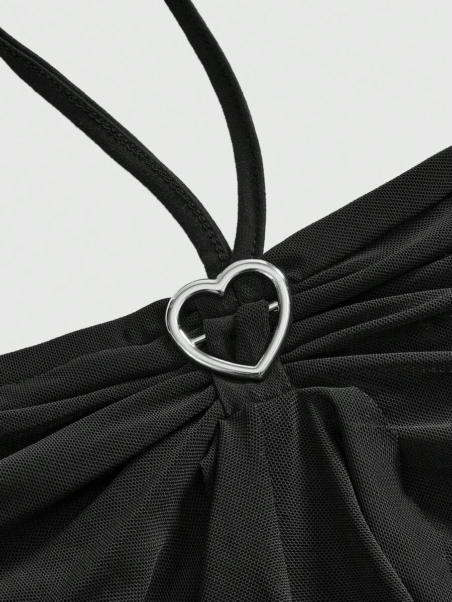 Kawaii Women's Ruched Patchwork Turtleneck Sleeveless Top