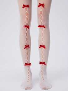 Kawaii Women's Spring/Summer Hollow Lace Bowknot Fishnet Stockings, Inner Footed Fishnet Socks For Fashion