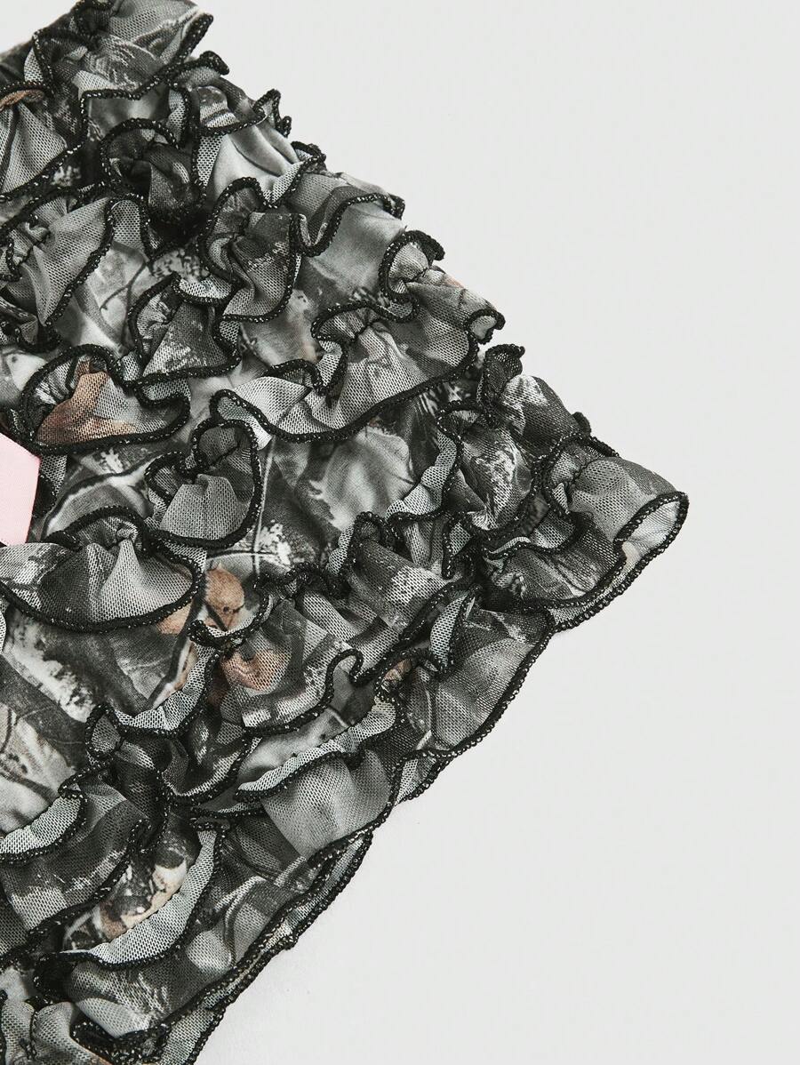Kawaii Y2K Camouflage Mesh Ruffle Bow Low Rise Women Shorts