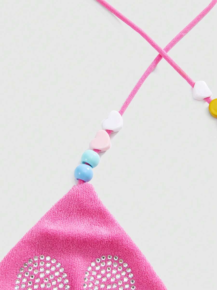 Kawaii Y2K Cute Cat Paw Crystal Stud Lace-Up Beaded Halter Crop Top