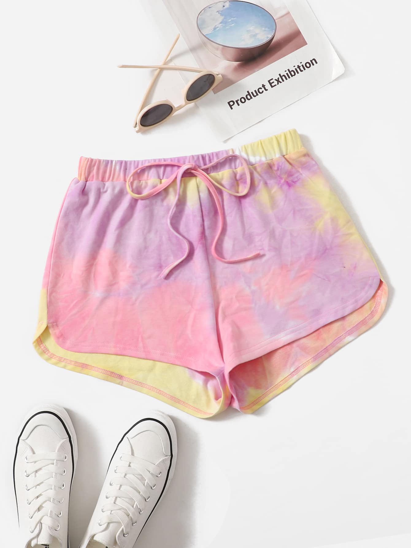 Knot Waist Tie Dye Runner Shorts