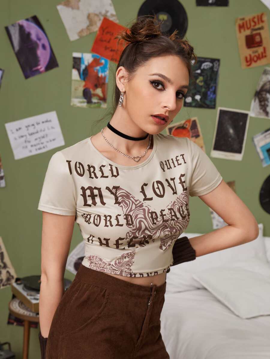 Letter Butterfly Graphic Crop Tee