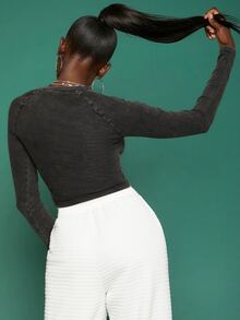 Letter & Figure Pattern Raglan Sleeve Crop Tee