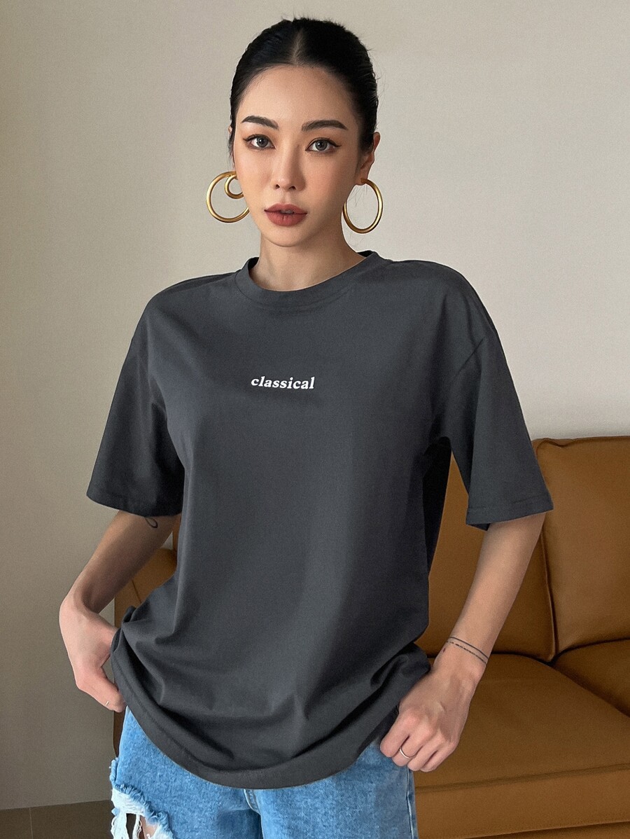 Letter Graphic Crew Neck Tee Summer Preppy Tops