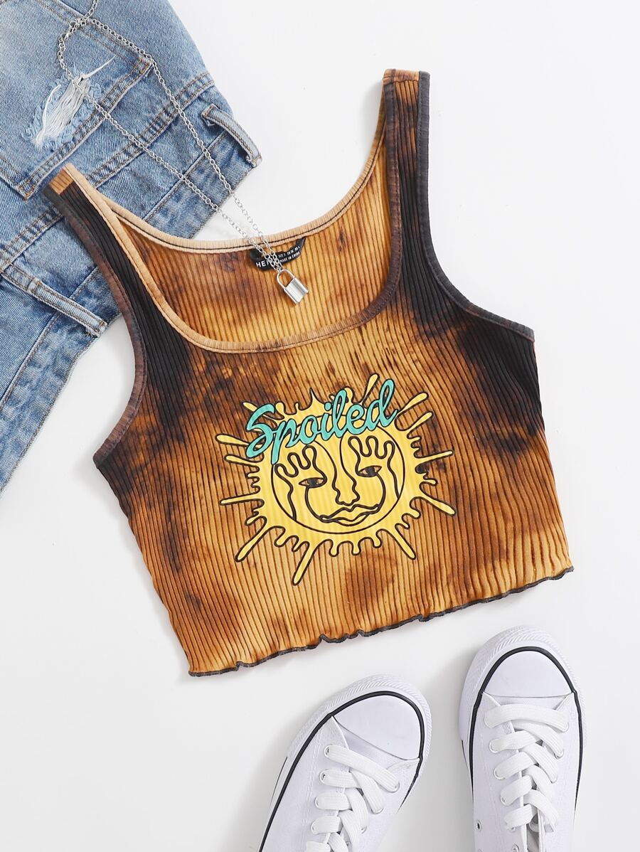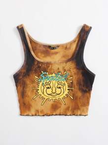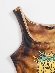 Letter Graphic Tie Dye Tank Top