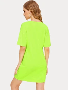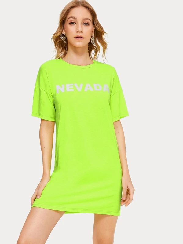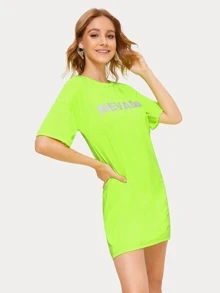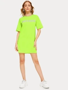 Letter Print Neon Lime T-shirt Dress