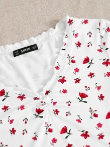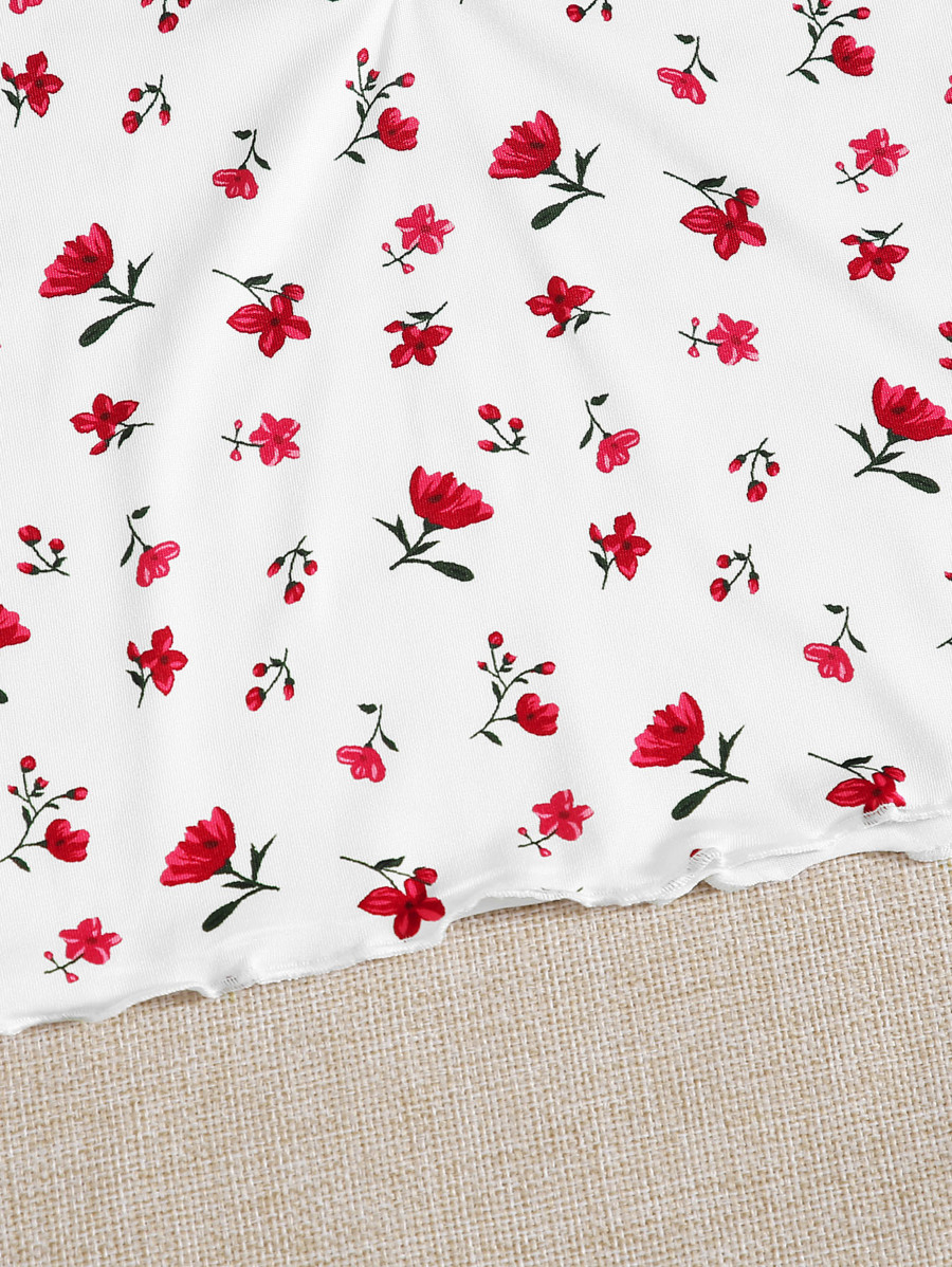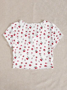 Lettuce Trim Ruched Detail Ditsy Floral Crop Top
