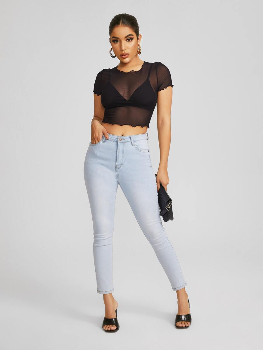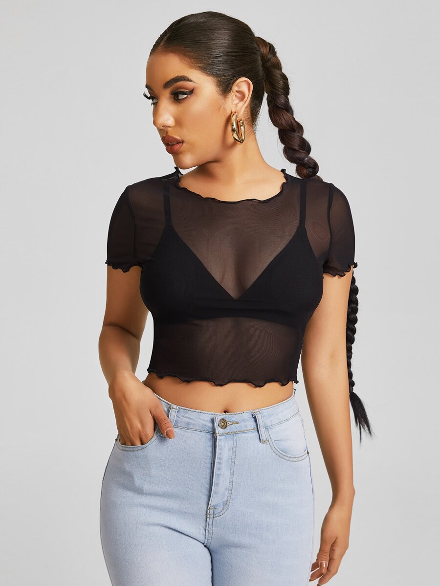 Lettuce Trim Sheer Mesh Crop Top Without Bra, Going Out Top