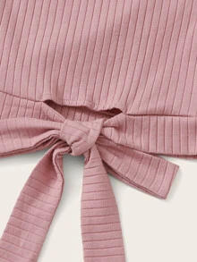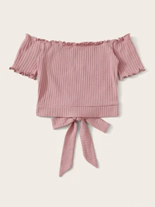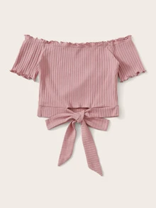 Lettuce Trim Tie Hem Rib-knit Bardot Top