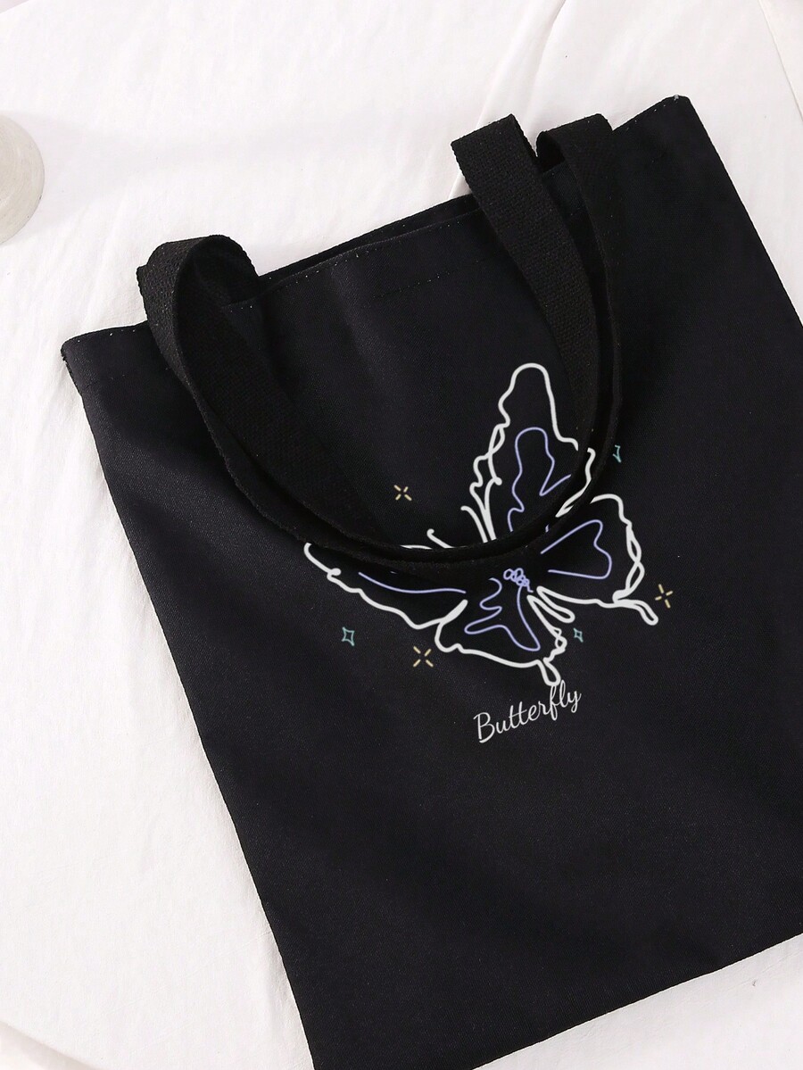 Medium Shopper Bag Casual Letter Butterfly Graphic For Shopping
