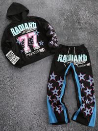 Street Life 2pcs/Set Men's Star Print Hooded Sweatshirt And Sweatpants Set, Casual Wear