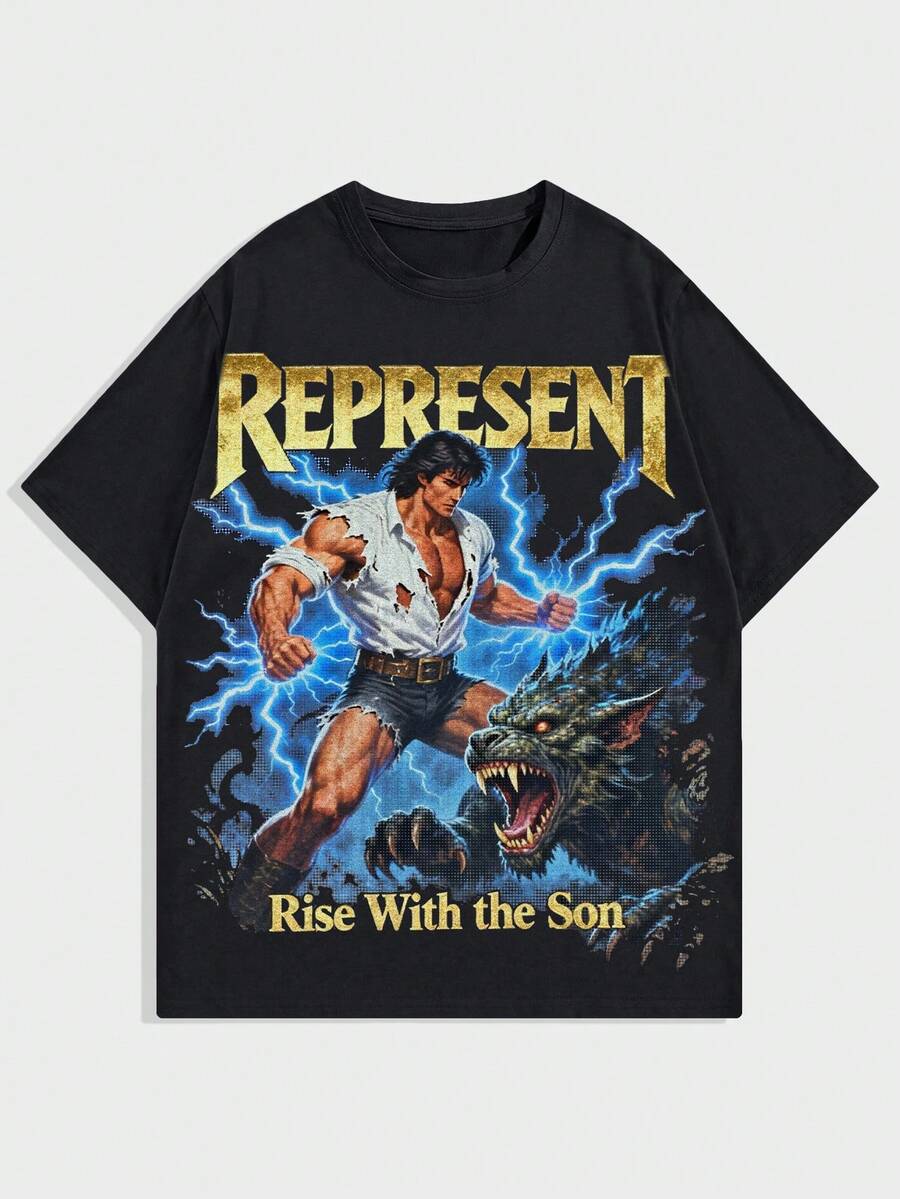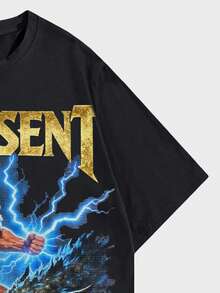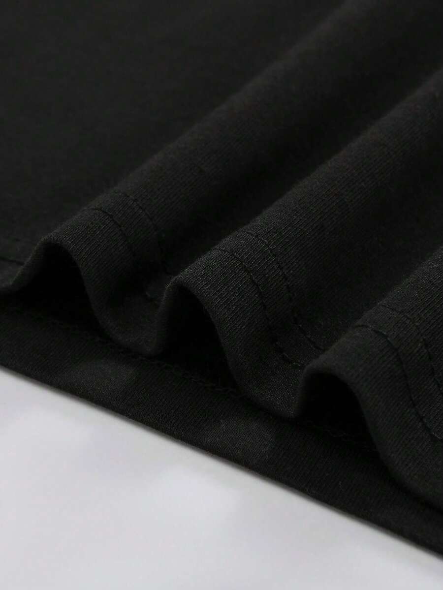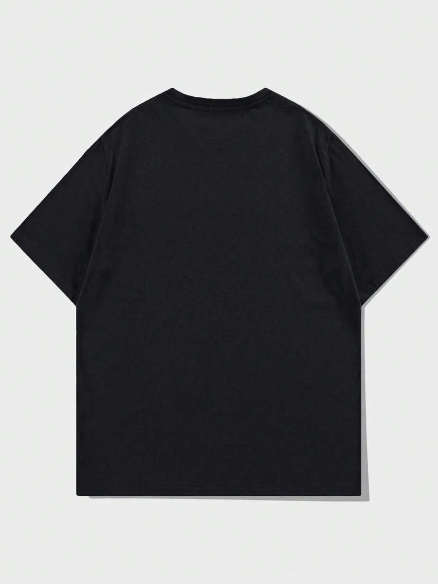 Men's Casual Fashionable Street Wear Daily Commute Anime Character Monster Slogan Print Short Sleeve Black T-Shirt, Summer