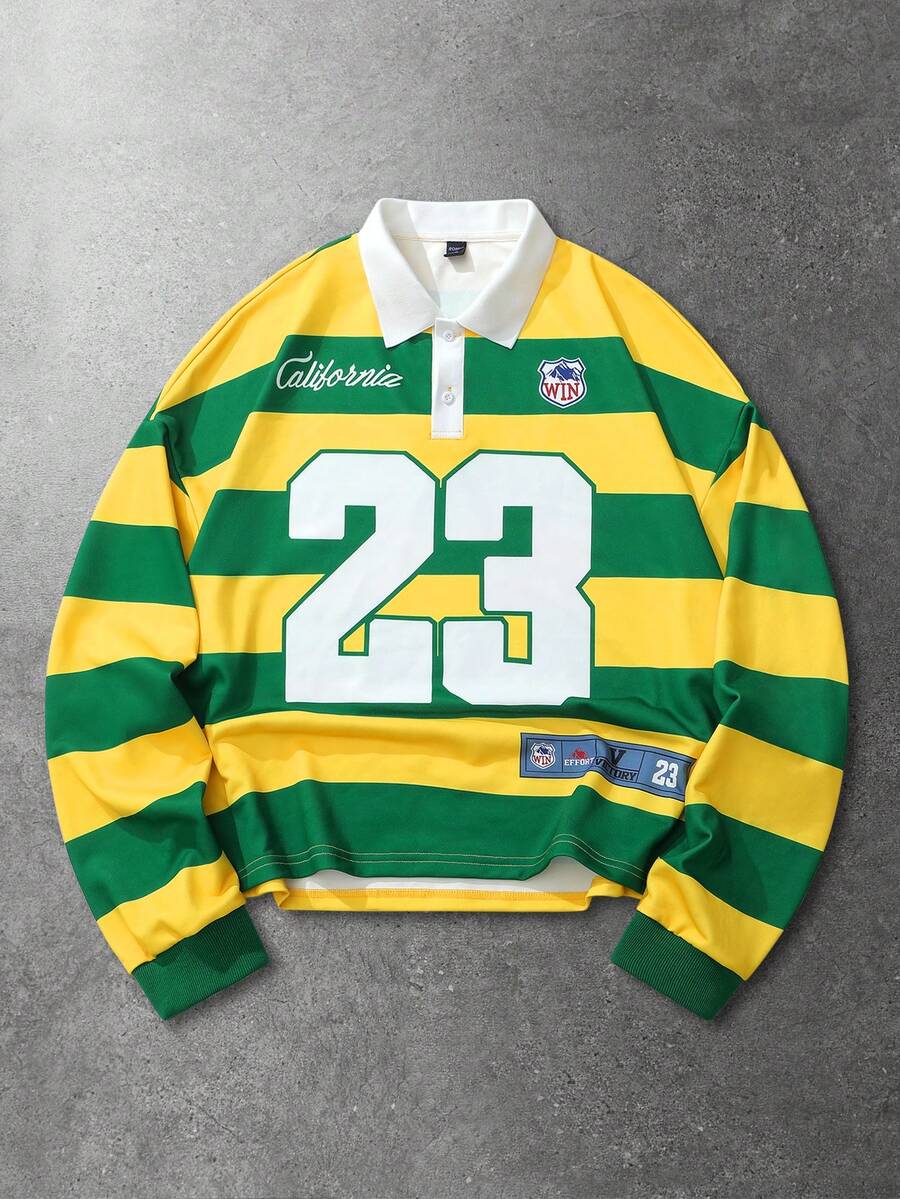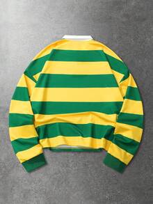 Men's Casual Preppy Striped Print T-Shirt For Autumn