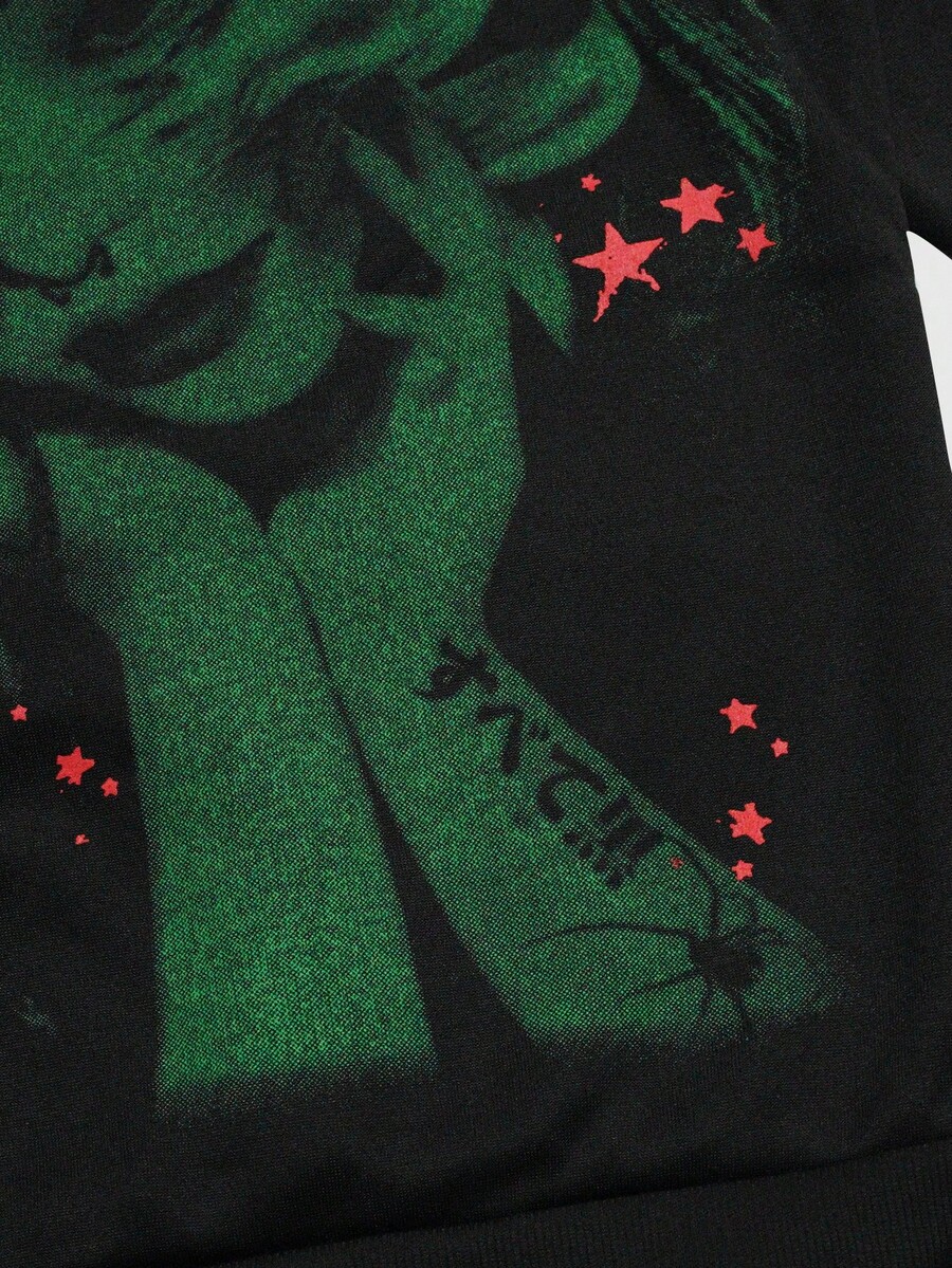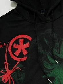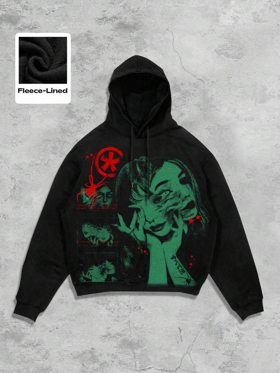 Men's Graphic Print Anime Drawstring Hooded Fleece Sweatshirt, Casual For Autumn/Winter