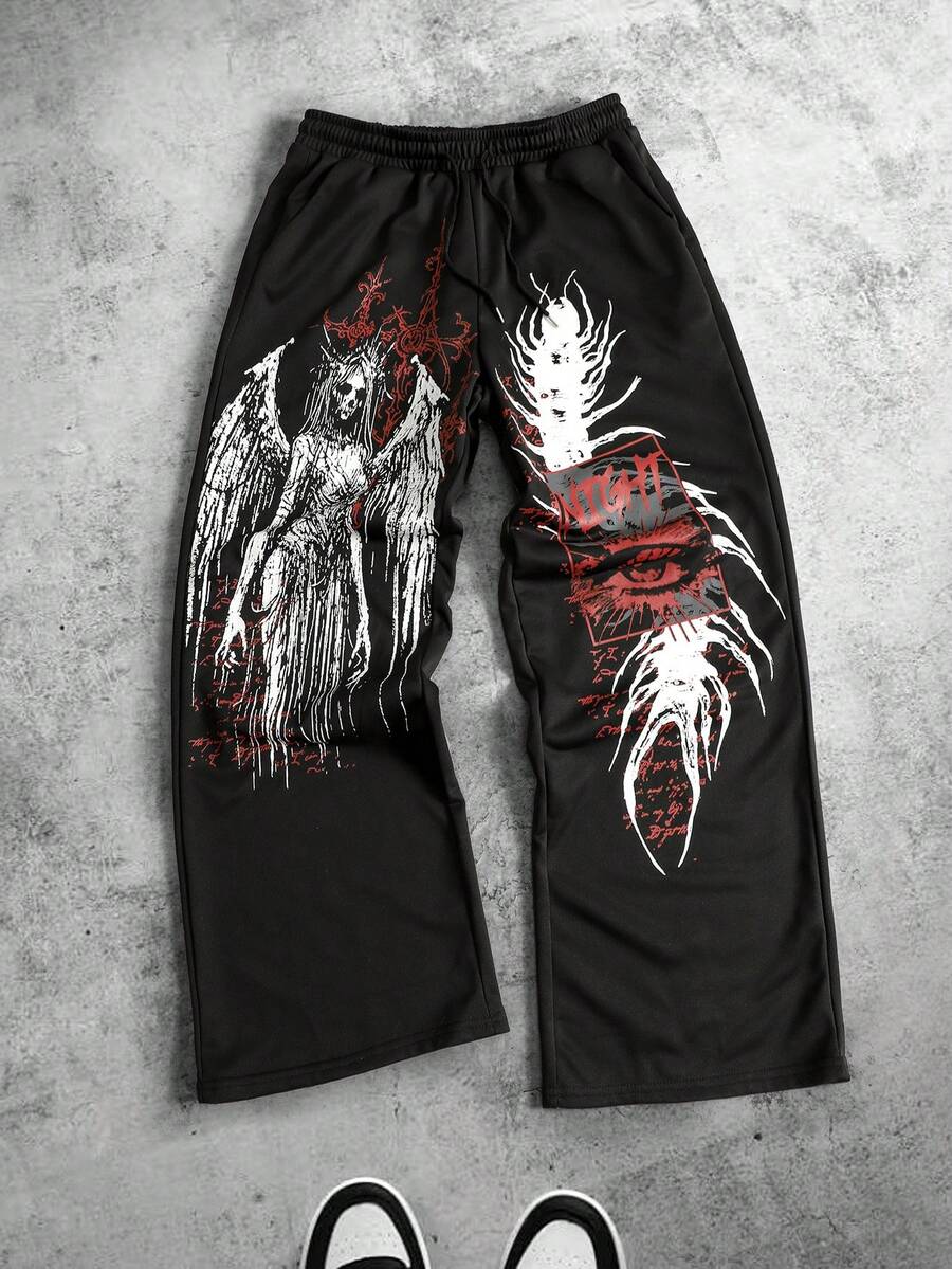 Men's Letter & Eye Print Loose Fit Casual Wide Leg Sweatpants