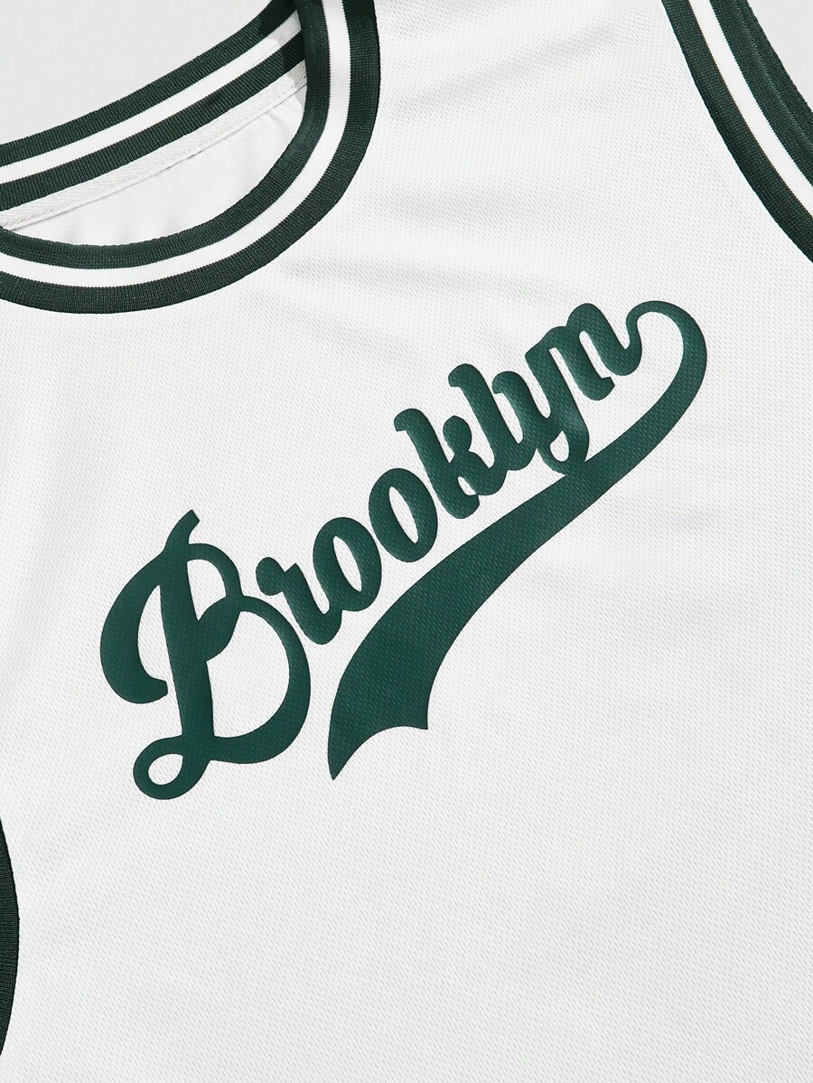 Men's Prep Letter Graphic Trim Tank Top And Shorts Set