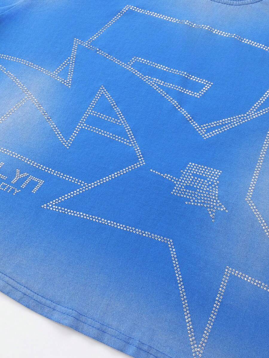 Men's Sporty Diamond Rhinestone Pattern Washed Boxy Fit T-Shirt