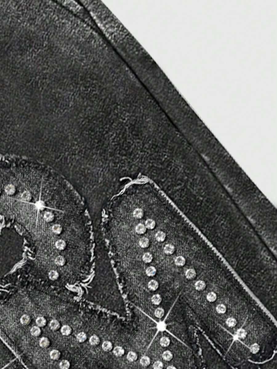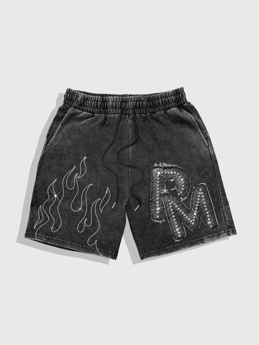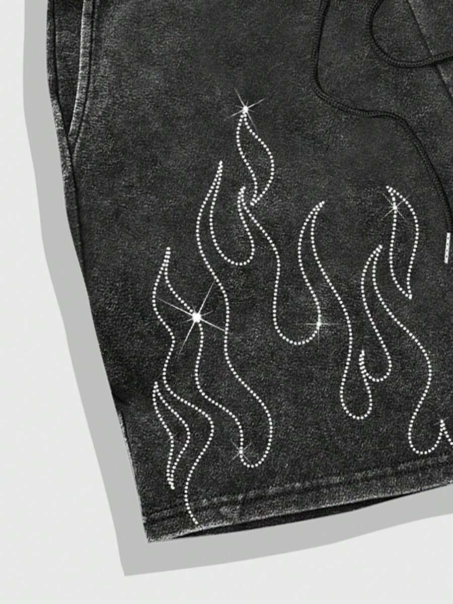 Men's Street Life Rhinestone Flame Pattern Drawstring Waist Pocket Shorts