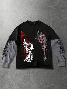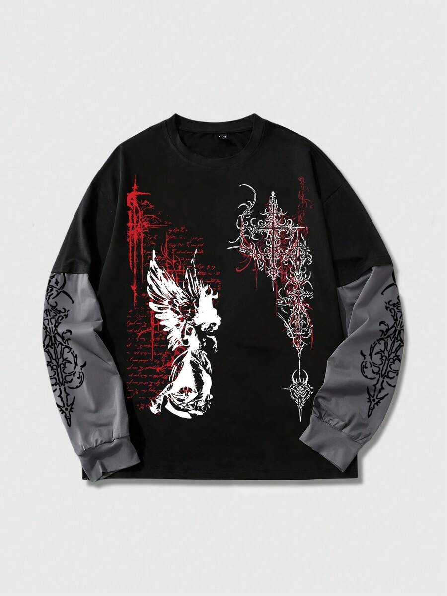 Men's Wing Print Round Neck Casual Long Sleeve T-Shirt
