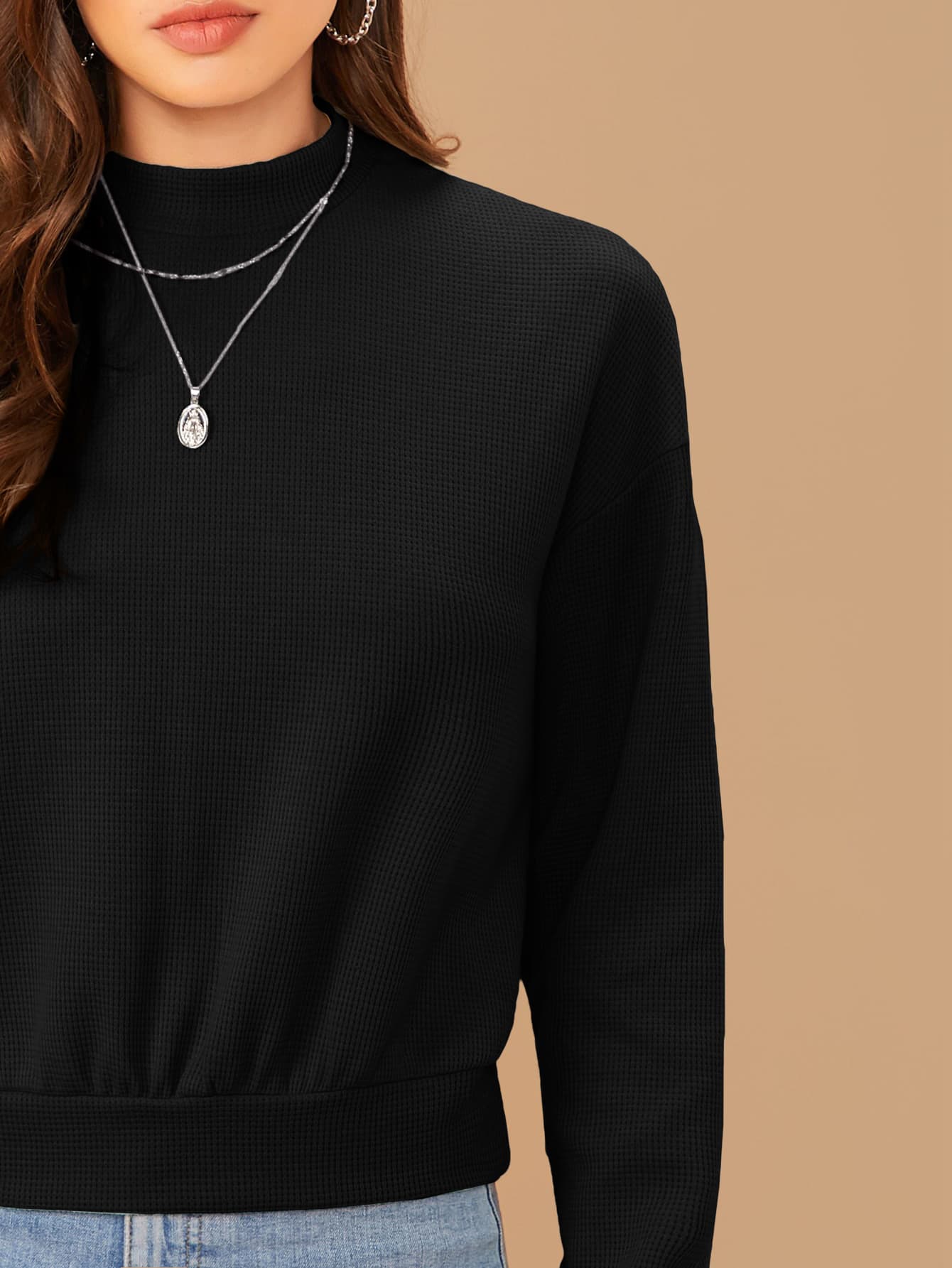 Mock-Neck Drop Shoulder Pullover,Long Sleeve Tops In Fall/Winter