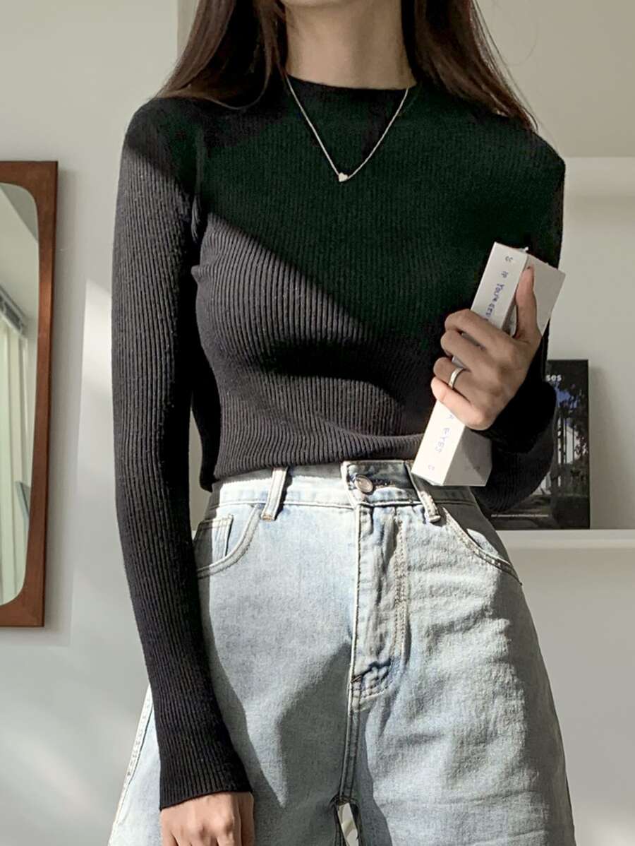 Mock Neck Ribbed Knit Jumper