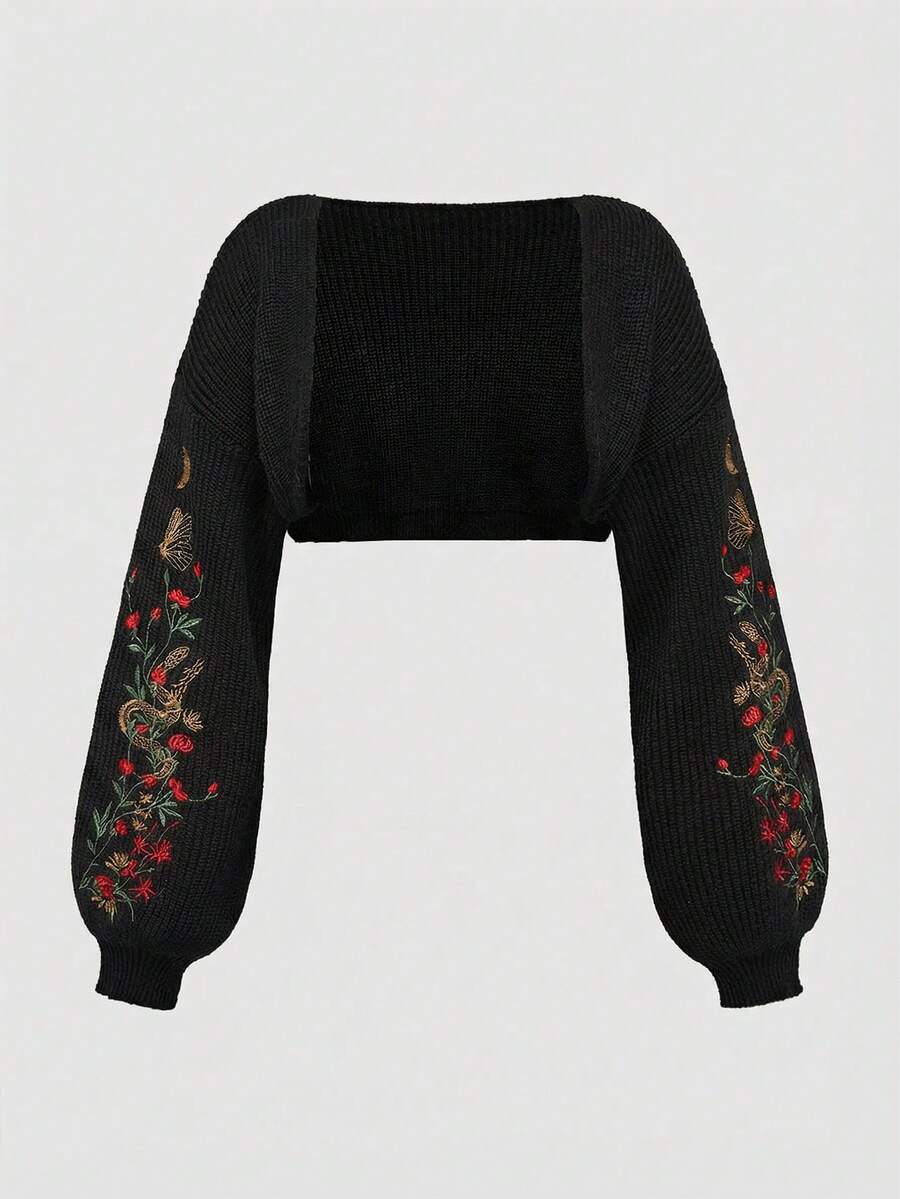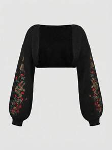 Nature Goth Plant Embroidered Cropped Vest Cardigan