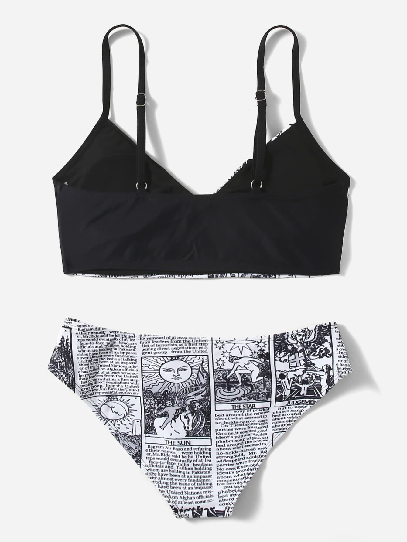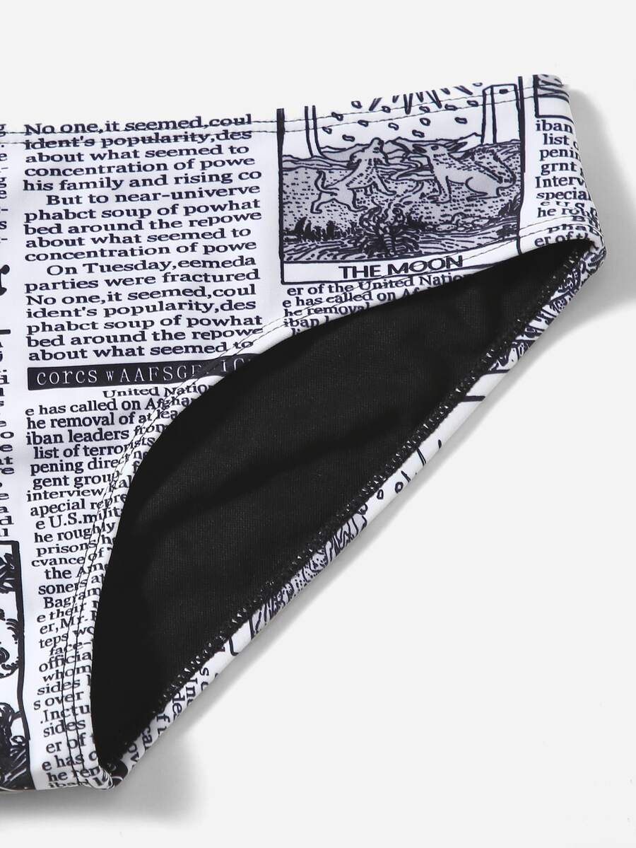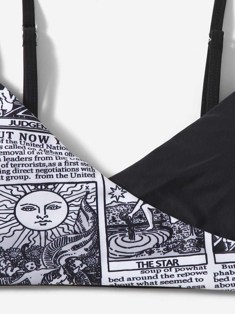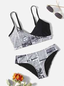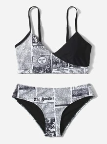 Newspaper Print Surplice Neck Bikini