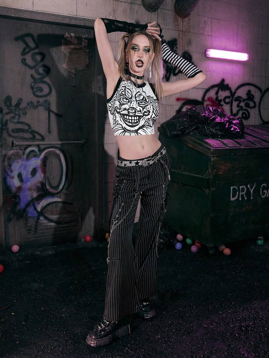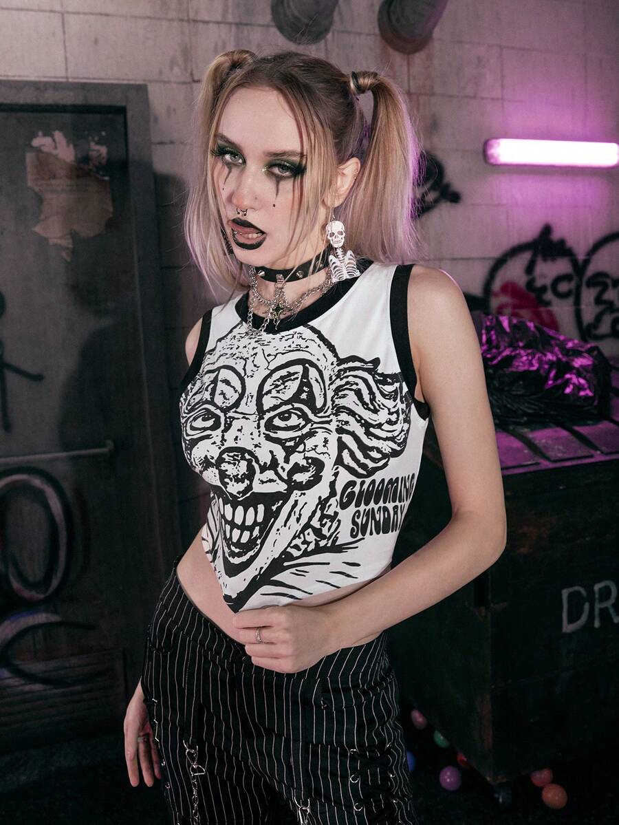 Noosie Grunge Punk Clown Print Contrast Binding Tank Top