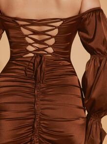 Off Shoulder Flounce Sleeve Satin Dress