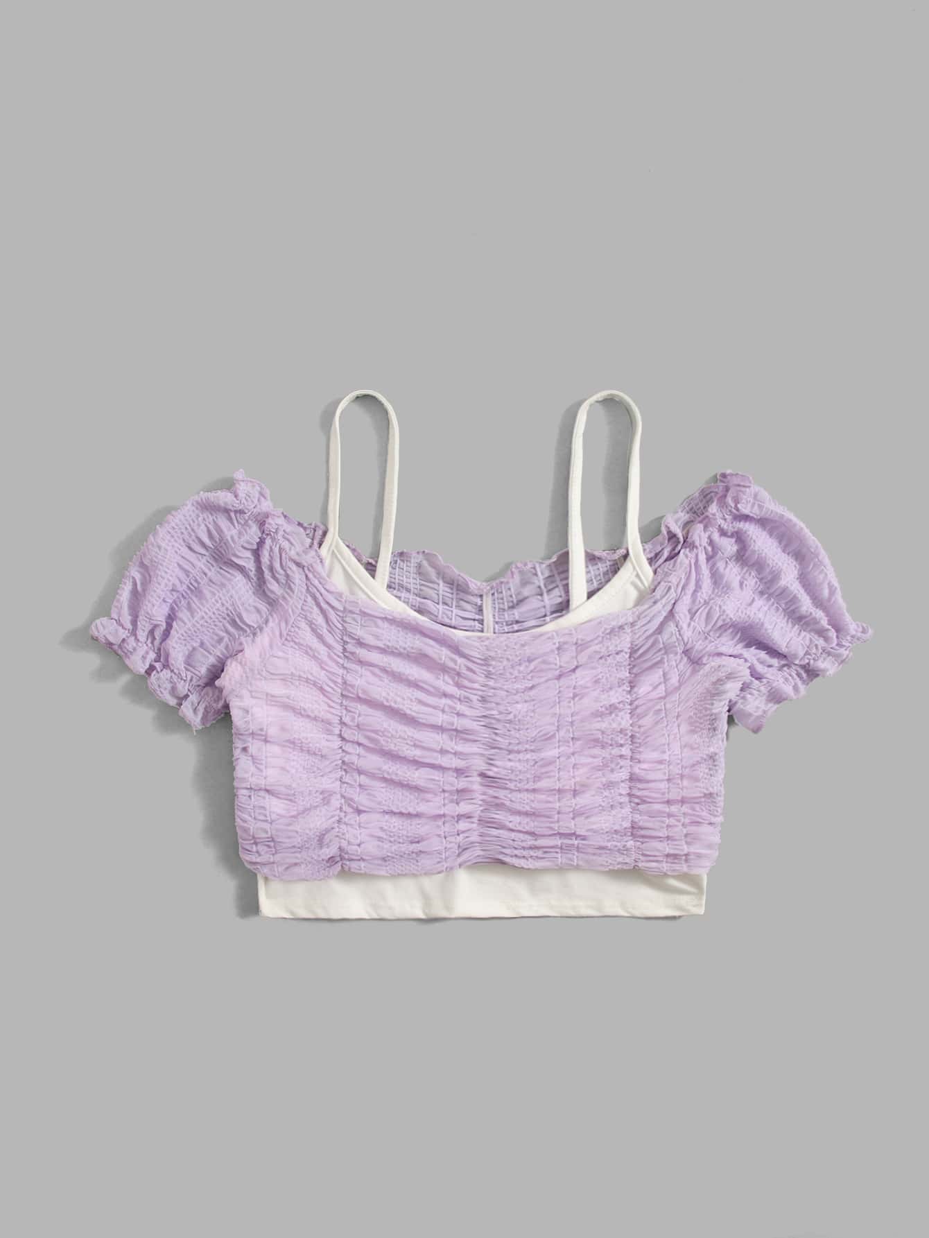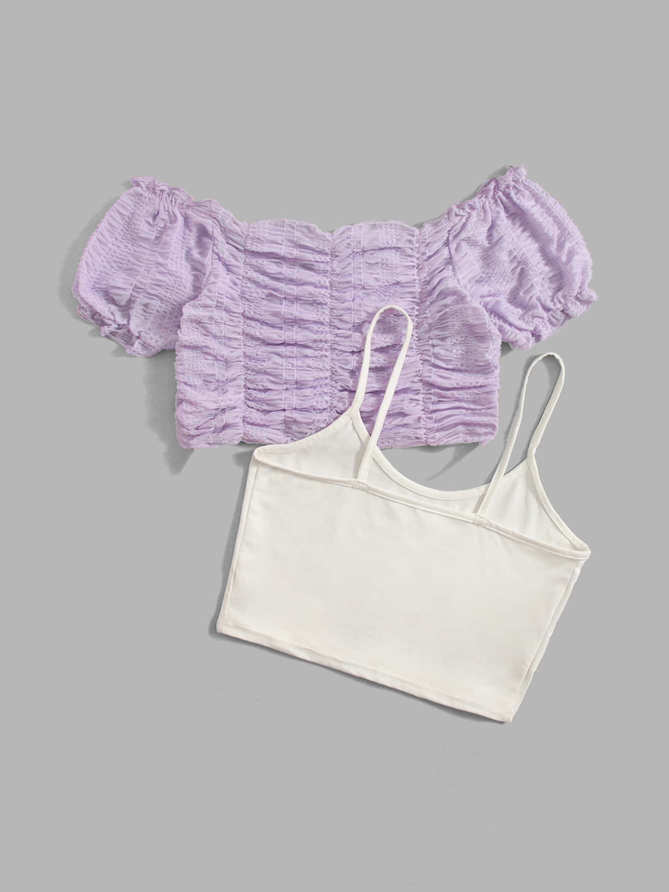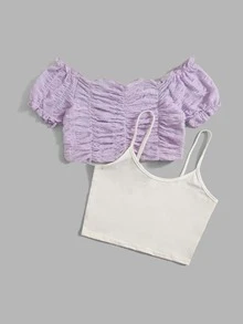Off Shoulder Ruched Blouse & Cami Top