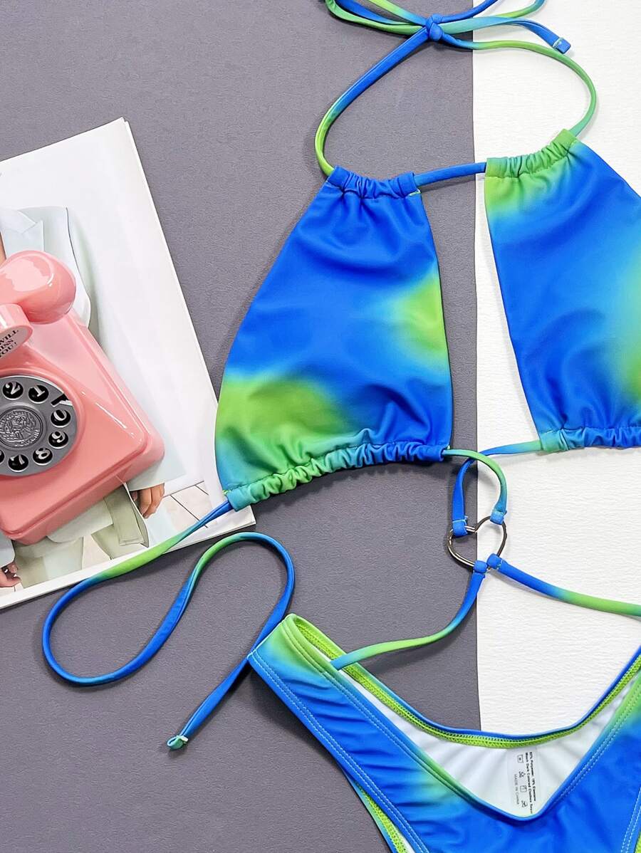 Summer Beach Ombre Cut-Out Halter One Piece Swimsuit
