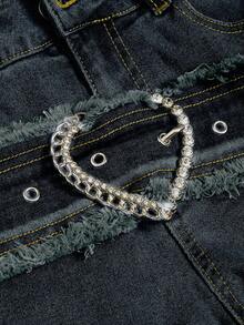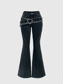 PETITE Spring/Summer Casual Y2K Retro Heart Metal Buckle Frayed Waist Belt Low Waist Skinny Flare Jeans For Women