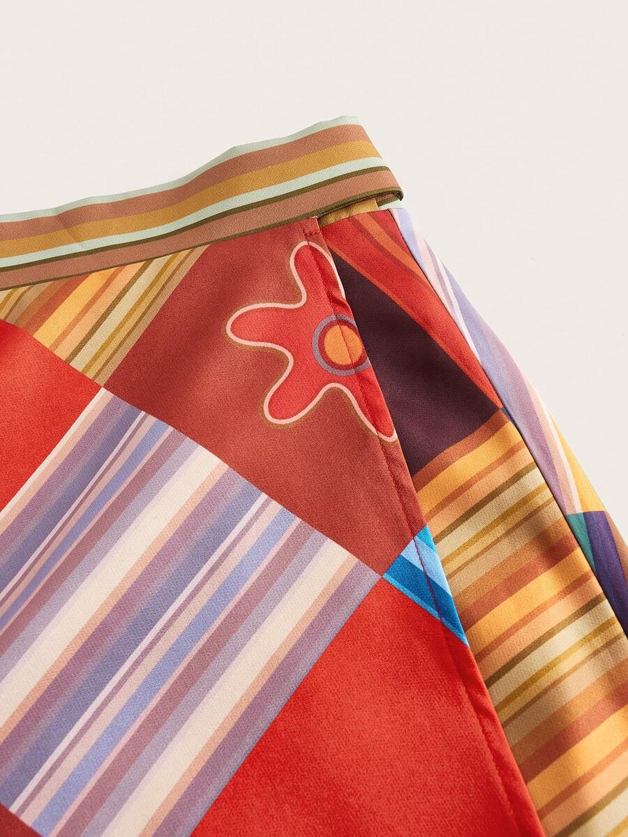 Patchwork Print Knot Side Skirt